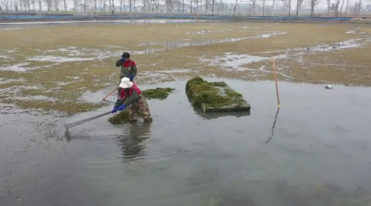 养殖户黄卫的200亩蟹塘已提前完成清塘消毒,并种植苦草、伊乐藻等水生植物,为蟹苗营造生态栖息环境。他严格把控投放密度,按每亩2000只的标准进行投放。