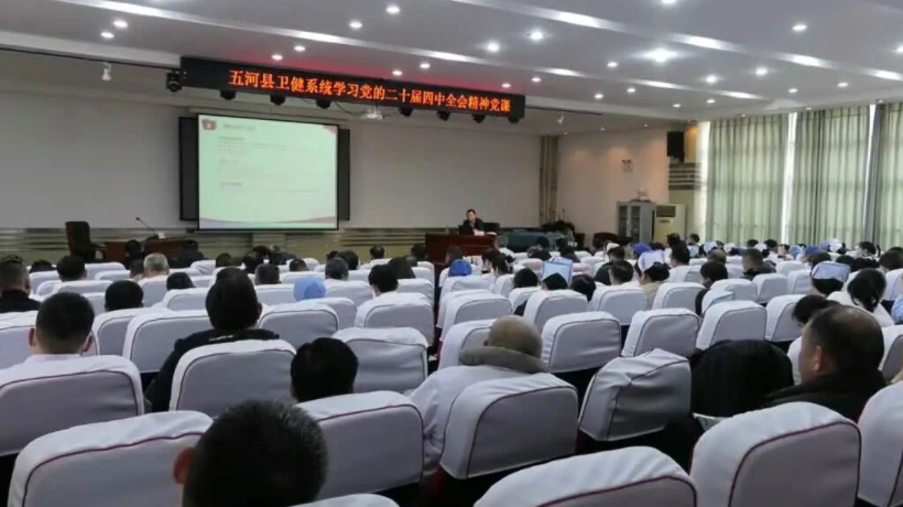 为深入学习宣传贯彻党的二十届四中全会精神,引导全县卫生健康系统广大干部职工深刻领会全会提出的新思想、新论断、新要求,切实把思想和行动统一到党中央决策部署上来,1月15日下午,县卫生健康系统党的二十届四中全会精神专题宣讲活动在县人民医院举办。副县长陈晓宏出席活动。